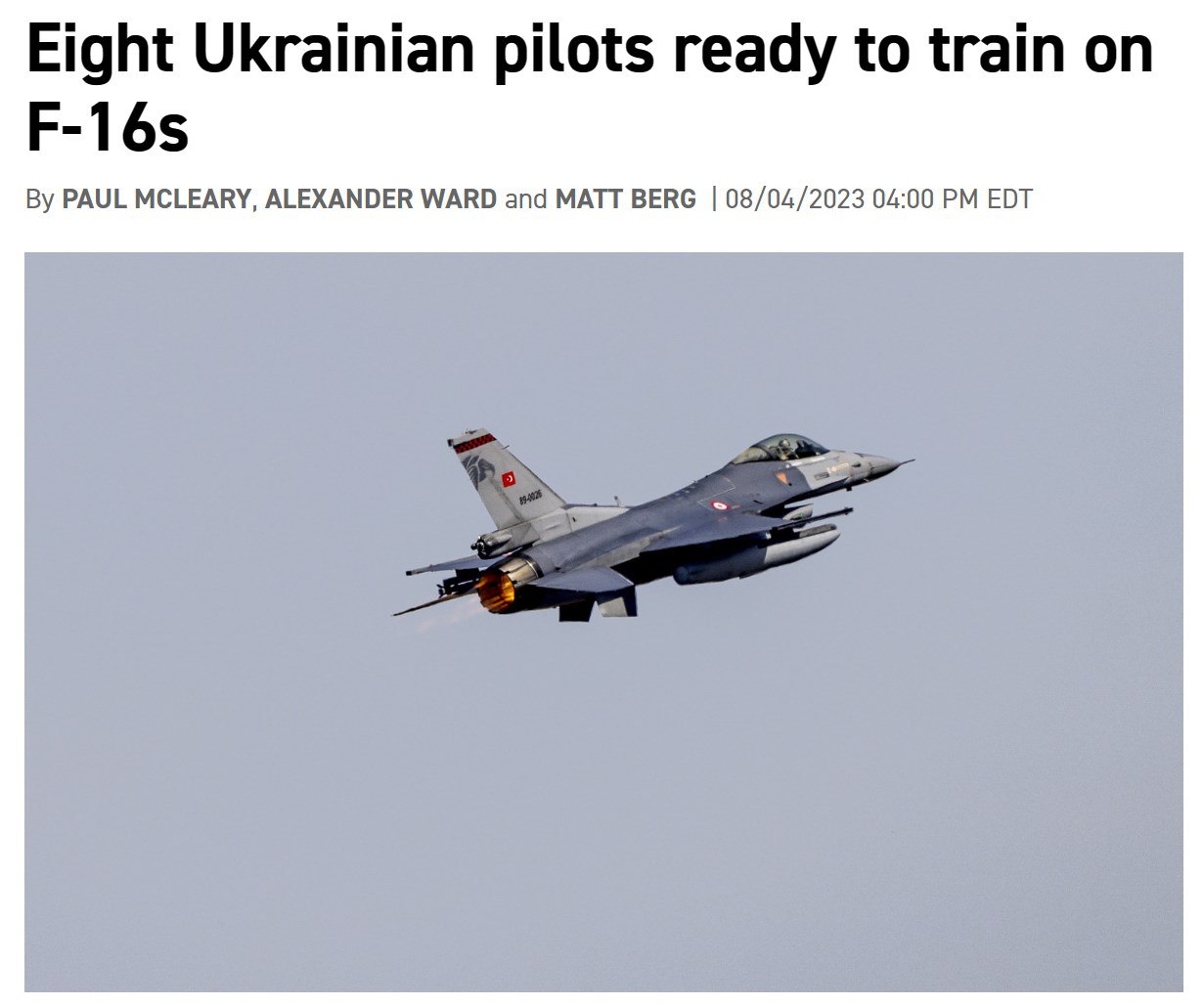 32 пилота - этого достаточно для двух эскадрилий F-16, пишет Politico (эскадрилья у НАТО составляет 12-16 самолетов).