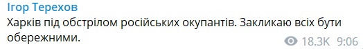 Сегодня утром в Харькове прозвучали взрывы. Мэр города Игорь Терехов сообщил, что город находится под обстрелом.