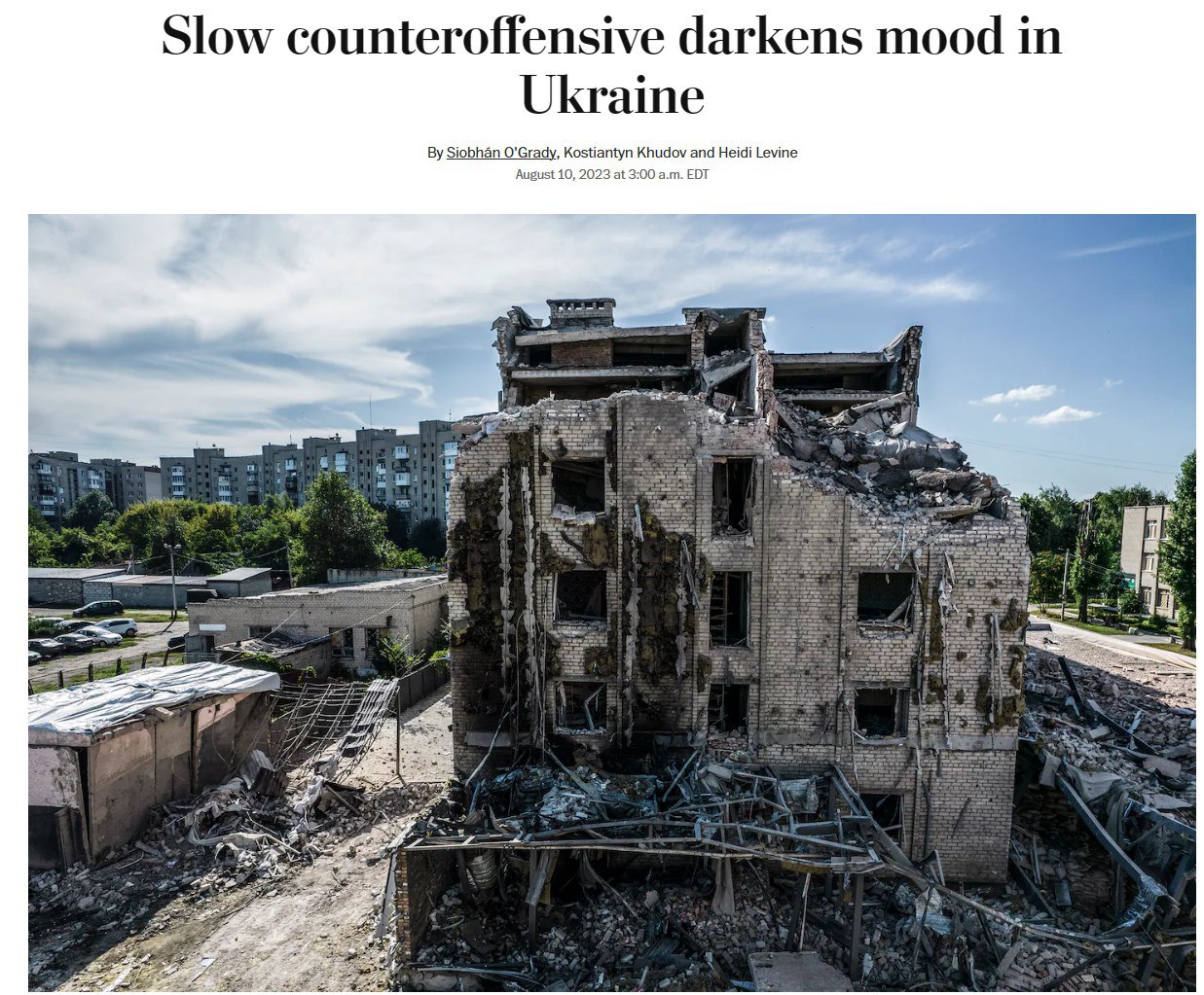 Медленное контрнаступление "омрачает настроения" в Украине и вызывает "чувство коллективного разочарования".