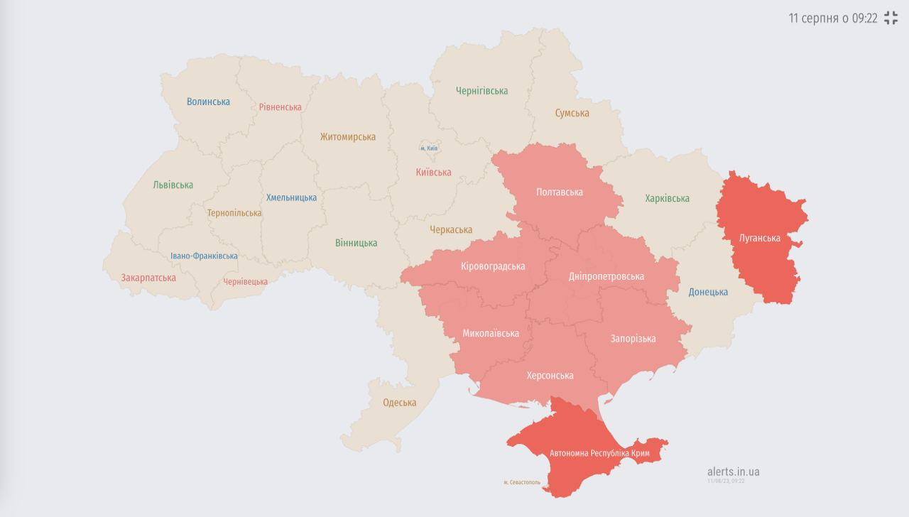 09.30 Воздушные силы сообщают о ракетной опасности в Кировоградской, Полтавской, Николаевской, Запорожской и Херсонской областях.