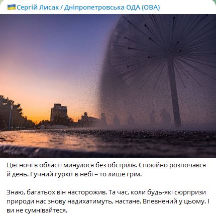 07.27 Ночь в Днепропетровской области прошла без обстрелов.