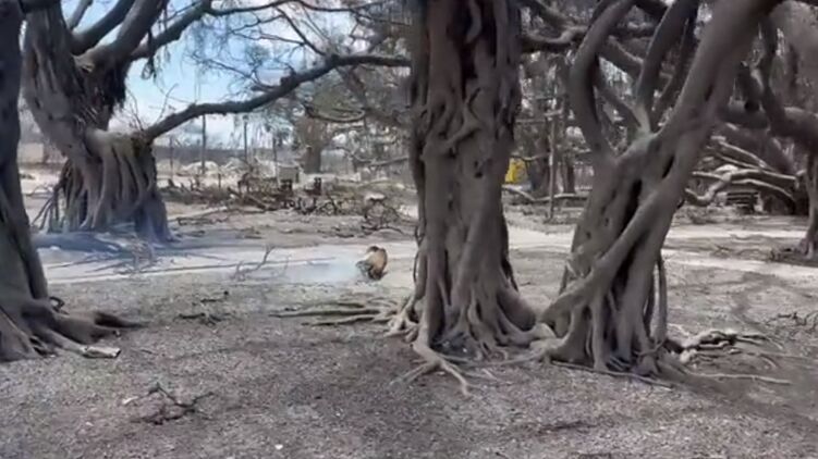 Пожары на Гавайях может погубить одной из главных достопримечательностей Лахайны - 150-летнее баньяновое дерево. Оно почернело от сажи, его ветви обуглились.