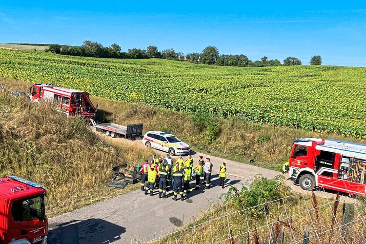 Автомобиль перевернулся, а затем упал с моста на грунтовую дорогу в районе Мистельбаха. По предварительным данным, водитель уснул за рулём (сам он выжил).