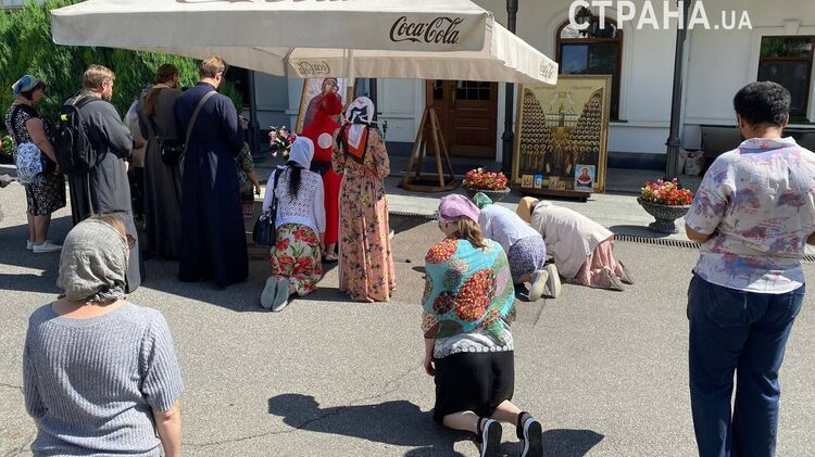 У главных ворот Киево-Печерской лавры верующие Украинской православной церкви (УПЦ) продолжают молитвенное стояние. Через закрытые ворота обители священники проводят причастие прихожан, так как тех на территорию лавры не допускают.