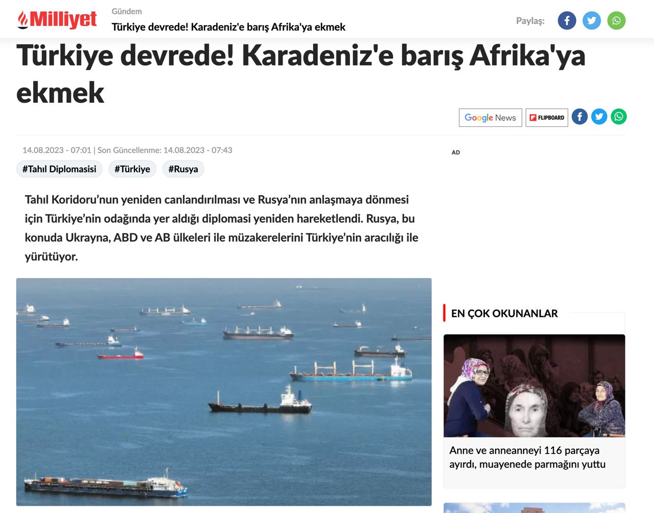 По данным издания, Анкара в преддверии визита активизировала переговоры с Украиной, США и странами ЕС для перезапуска зерновой сделки.
