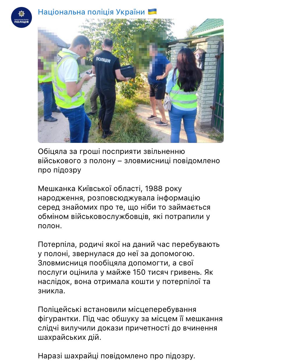 Как минимум одна потерпевшая обратилась к ней за помощью, которую злоумышленница оценила в 150 тысяч гривен. Деньги она получила и скрылась.