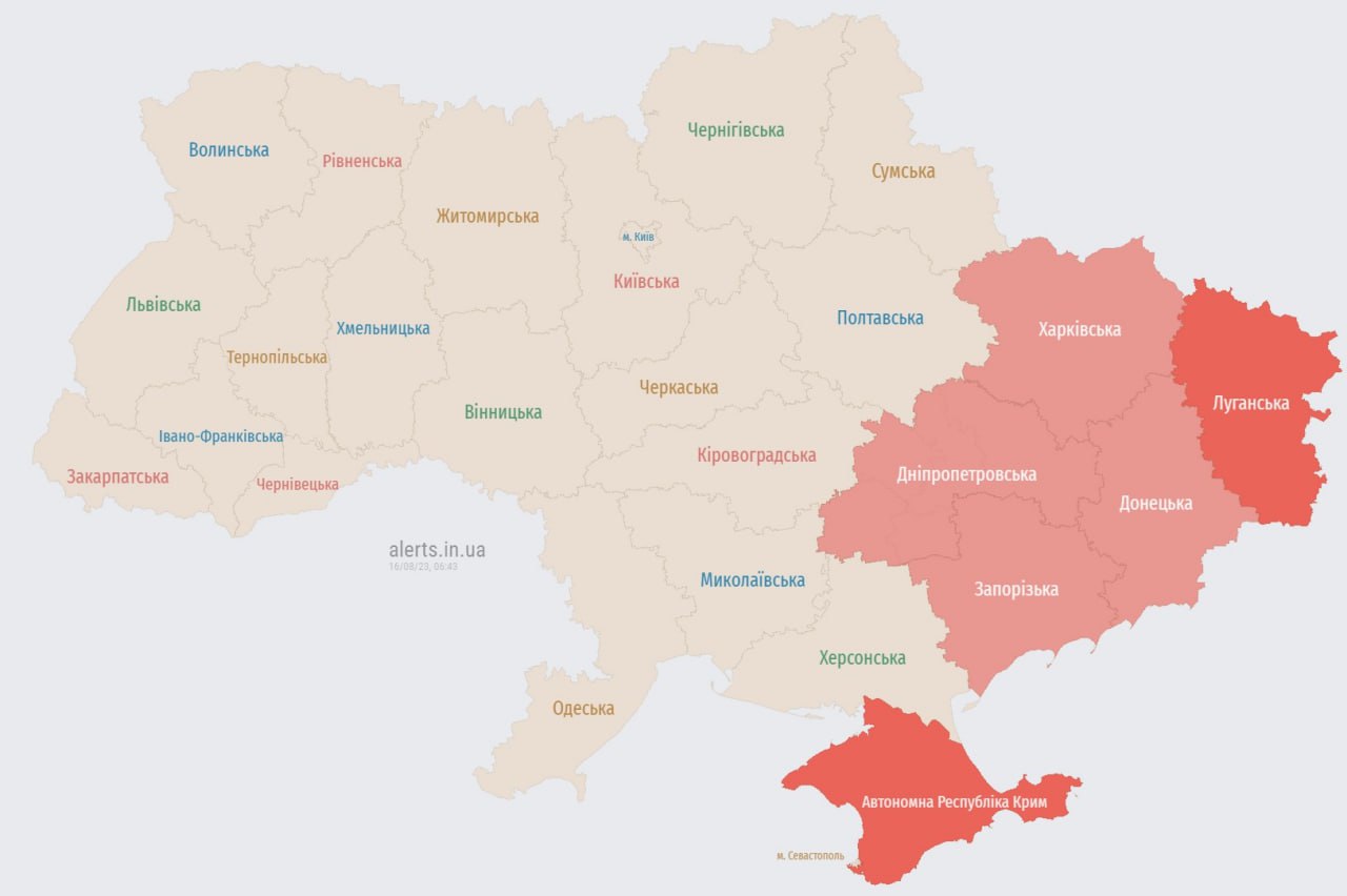 23.20 Воздушная тревога в восточных и юго-восточных областях.