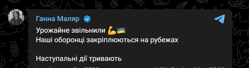 2. Об освобождении украинскими войсками Урожайного на Времьевском выступе в сводке не сообщается, однако говорится, что россияне обстреляли его.