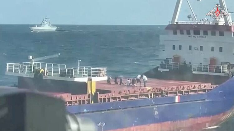"На требование остановки для досмотра на предмет перевозки запрещенных грузов капитан сухогруза не отреагировал" и "для принудительной остановки судна с российского боевого корабля был открыт предупредительный огонь из автоматического стрелкового оружия", - заявили в Минобороны РФ.