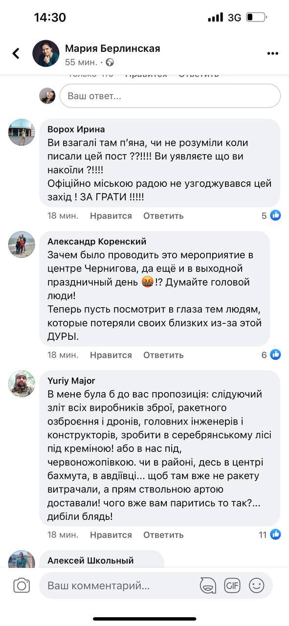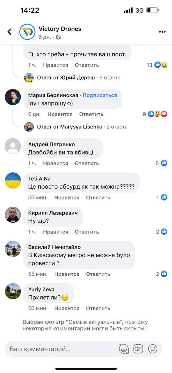 14:39 В комментариях под анонсом выставки дронов в драмтеатре Чернигова, которая, судя по всему, и была целью ракетного удара, поднялась волна хейта в адрес организаторов мероприятия.