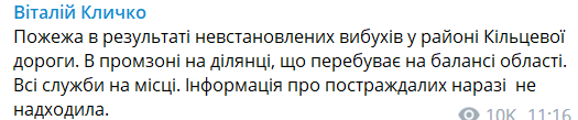 11:35 В МВД прокомментировали пожар и взрывы у районе Кольцевой дороги в Киеве.