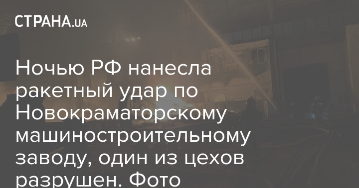 Ночью россияне нанесли ракетный удар по Новокраматорскому машиностроительному заводу. Об этом сообщает Донецкая ОВА.