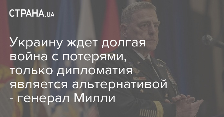 Украину ждет "долгая, очень трудная война с большими потерями", альтернативой является лишь дипломатия. Такое мнение высказал глава Объединенного комитета начальников штабов США Марк Милли в интервью Washington Post.