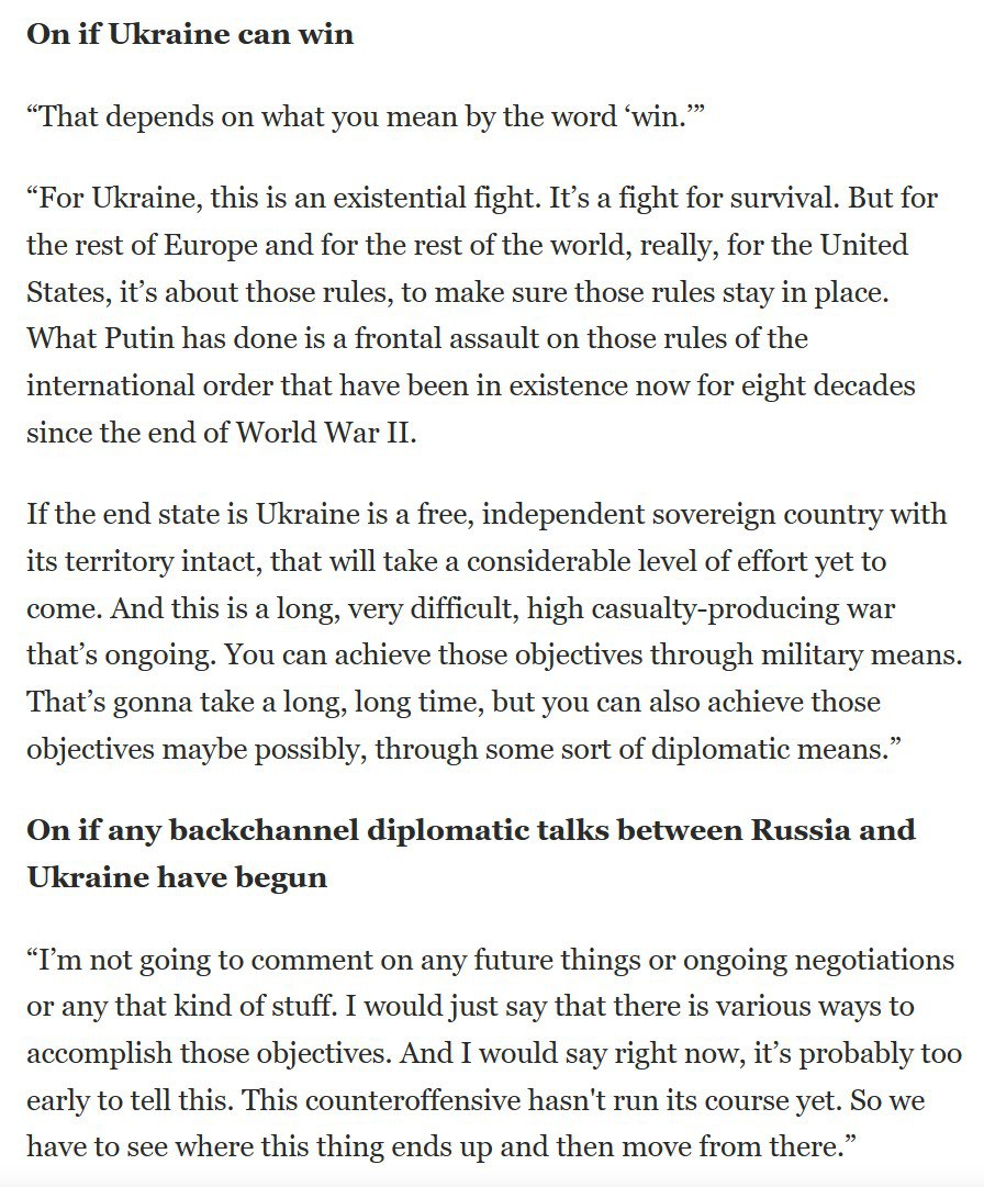 На вопрос о том, сможет ли Украина победить, Милли заявил, что это "потребует значительных усилий в будущем" и длительного срока.