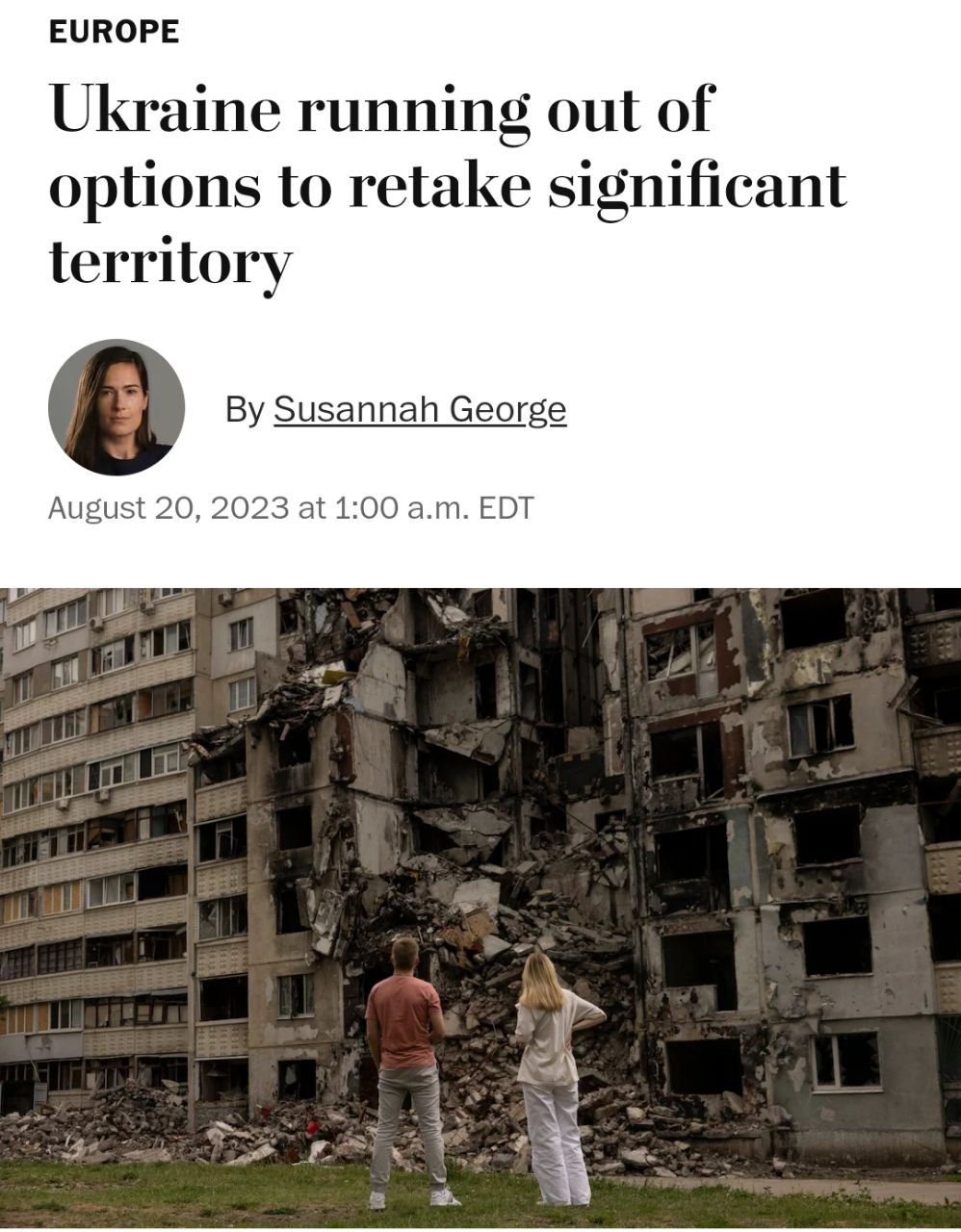 Очередная, наполненная пессимизмом статья о контрнаступлении ВСУ в западных СМИ. Washington Post пишет, что у Киева "заканчиваются варианты", поскольку "контрнаступление застопорилось".