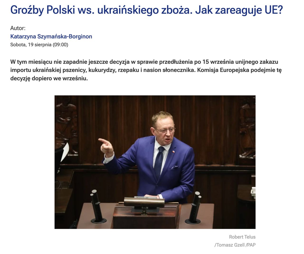 Ранее министр сельского хозяйства Польши Роберт Телюс заявил, что Варшава в любом случае закроет границу для агропродукции из Украины 15 сентября.
