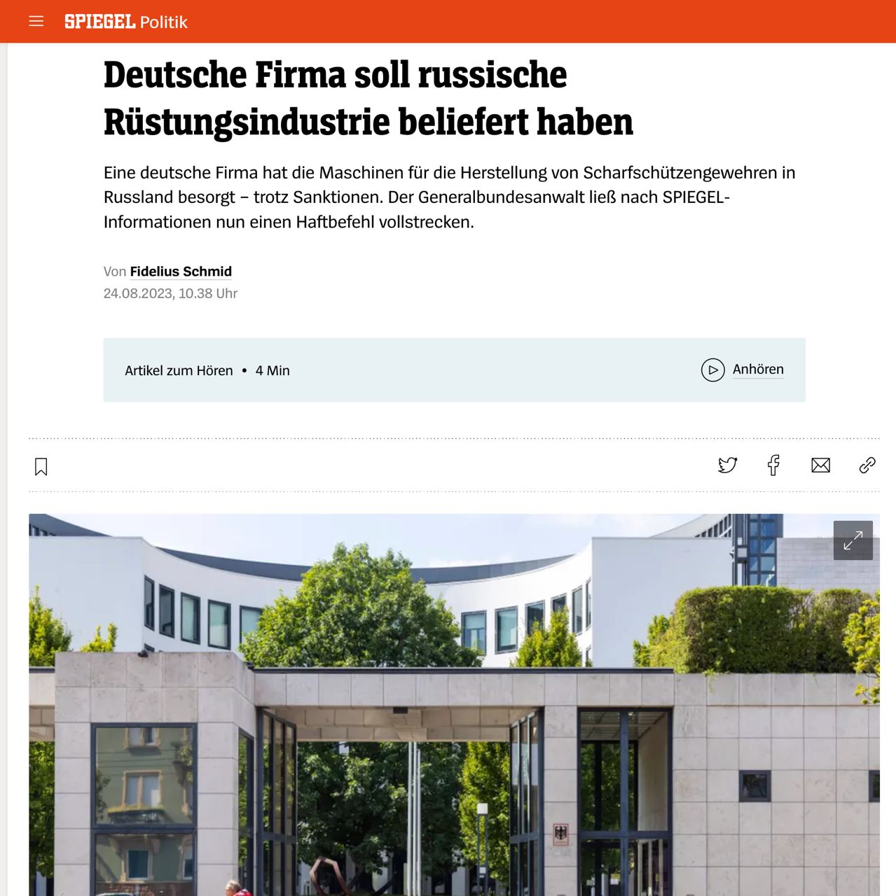 14.59 Немецкая компания поставляла в РФ станки для производства снайперских винтовок, заявляет Der Spiegel со ссылкой на источники.