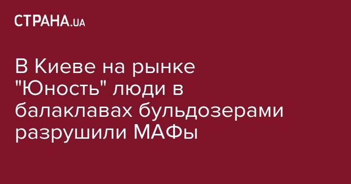 В Киеве на рынке "Юность" люди в балаклавах бульдозерами разрушили МАФы