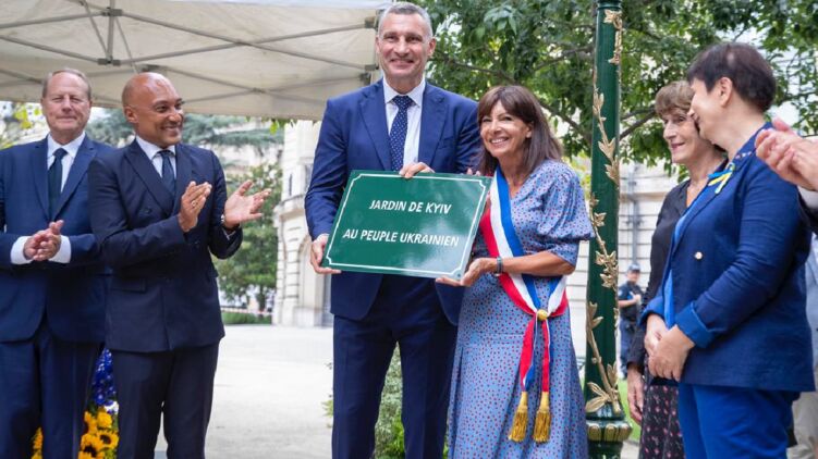 Кличко провел День независимости в столице Франции, где вместе с мэром Парижа открыл Киевский сквер. Фото