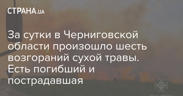 За минувшие сутки в Черниговской области пожарные ликвидировали шесть возгораний сухой травы. Погиб пожилой мужчина, с ожогами госпитализирована женщина.