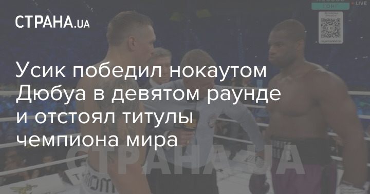 Украинский боксер Александр Усик победил нокаутом британца Даниеля Дюбуа в 9 раунде. При том, что в начале поединка противник нанес Усику удар ниже пояса.