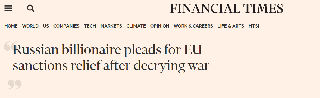 По словам собеседников издания, адвокаты Воложа обратились к ЕС с просьбой отменить ограничения через несколько дней после его заявления, в котором он осудил войну в Украине. Сообщается, что европейские чиновники обсудят обращение олигарха уже в следующем месяце.