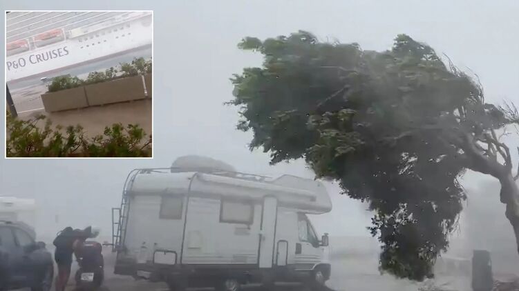 Небольшое количество людей получили незначительные травмы после того, как круизный лайнер P&O оторвался от причала и столкнулся с грузовым судном во время шторма.