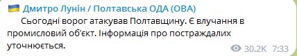 09.15 Подробности ночной ракетной атаки по предприятию в Полтавской области сообщает глава ОП Ермак.