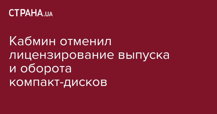 Кабинет министров Украины упразднил лицензирование выпуска и оборота компакт-дисков. Соответствующее постановление №903 от 7 декабря размещено на официальном сайте Кабмина.
