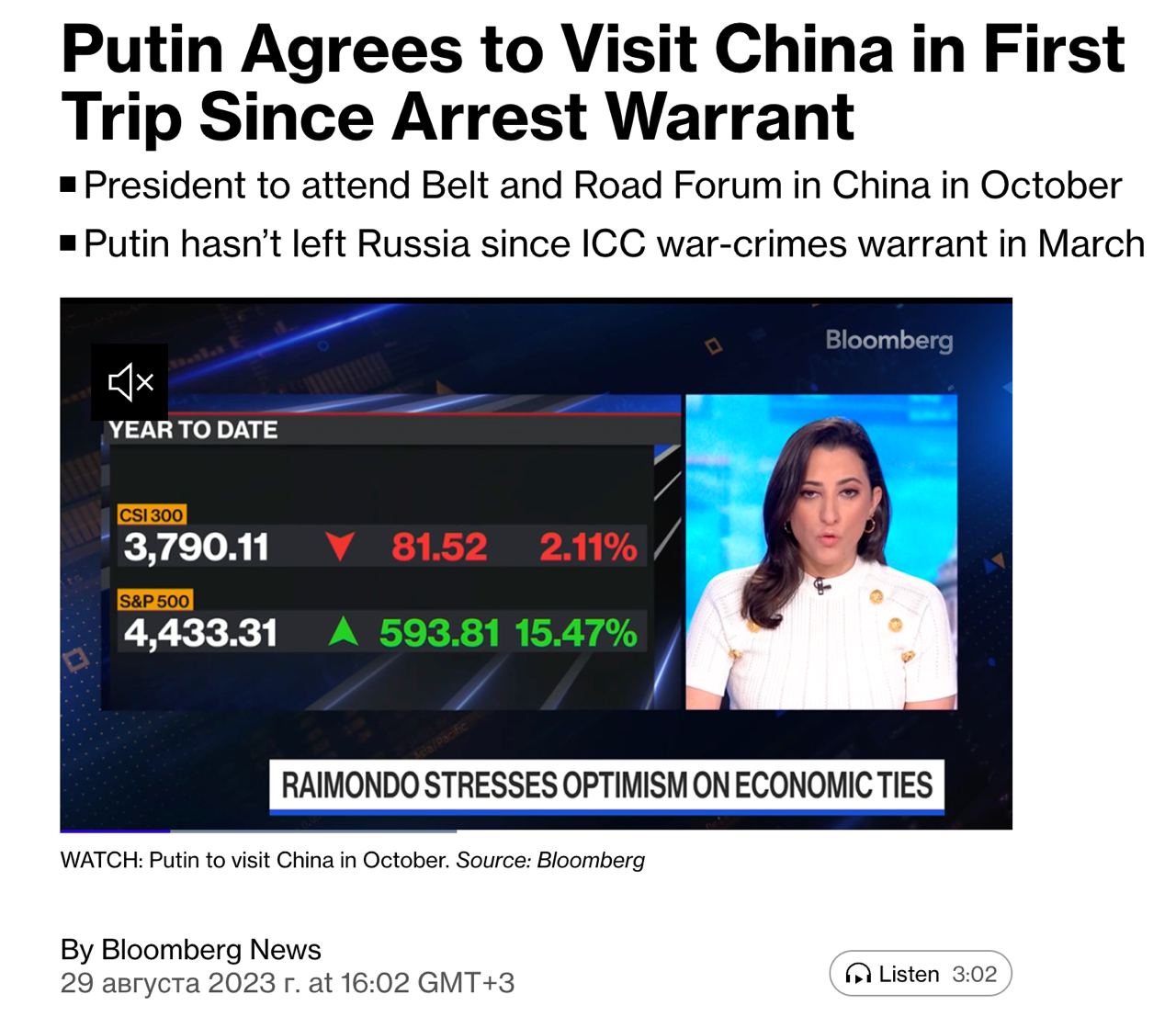 Президент РФ Владимир Путин согласился посетить Китай в октябре. Если поездка состоится, она станет первым заграничным вояжем главы Кремля после выдачи в марте Международным уголовным судом (МУС) ордера на его арест.