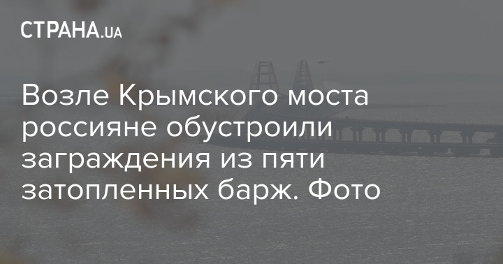 Возле Крымского моста россияне обустроили заграждения из пяти затопленных барж. Фото