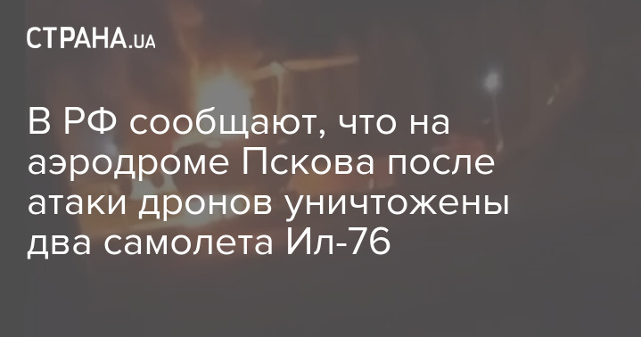 Российские телеграм-каналы пишут, что на российском аэродроме Пскова в результате налета дронов два самолета Ил-76 были уничтожены, еще четыре получили повреждения.