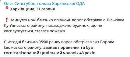 РФ обстреляла Харьковскую область ночью и утром 31 августа.