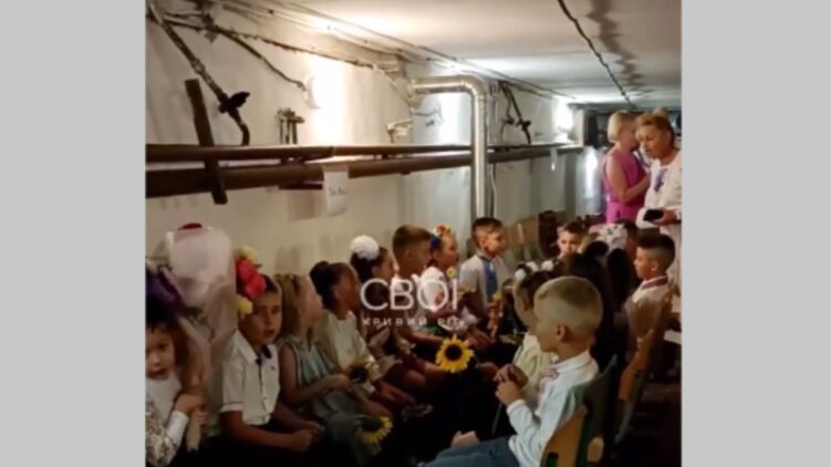 В сети появилось видео из одной из школ Кривого Рога, где дети отмечают первое сентября в бомбоубежище.