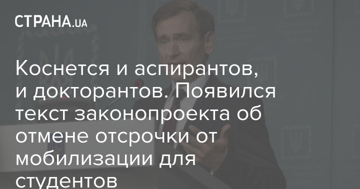 На сайте Верховной Рады появился текст законопроекта представителя президента в парламенте Федора Вениславского, который предлагает отменить отсрочку от мобилизации для соискателей второго высшего образования (это распространенная схема "откоса" от мобилизации).