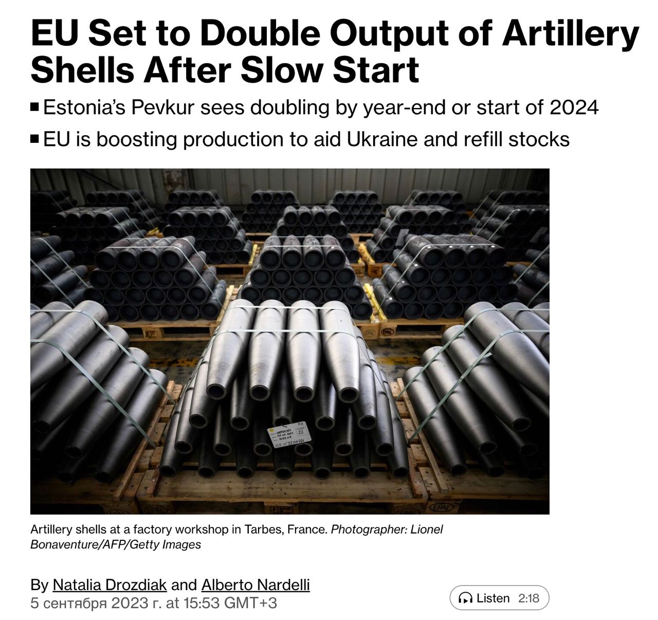 Как пишет издание, сейчас удается производить 300 тысяч снарядов в год, хотя планировалось миллион. На этот показатель в ЕС намерены выйти в следующем году.