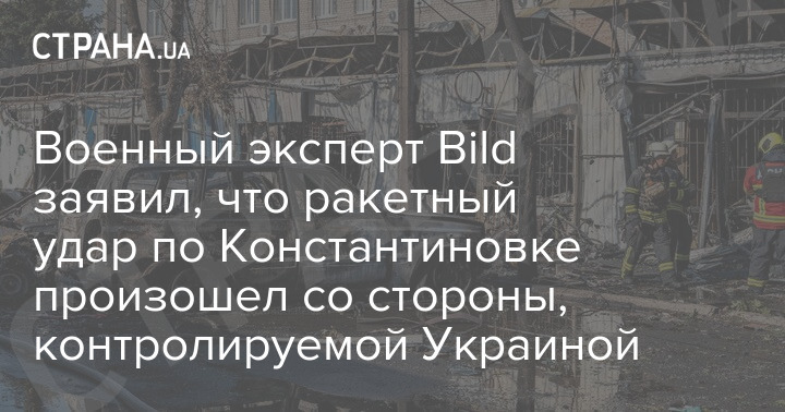 Военный обозреватель немецкого издания Bild Юлиан Рёпке заявил, что вчера ракета прилетела в Константиновку с северо-запада - со стороны территории, подконтрольной Украине.