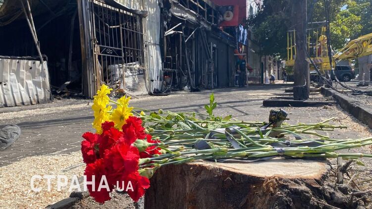 В Константиновке Донецкой области с утра местные жители и родственники погибших несут цветы к месту вчерашнего ракетного удара, где погибли 16 человек.