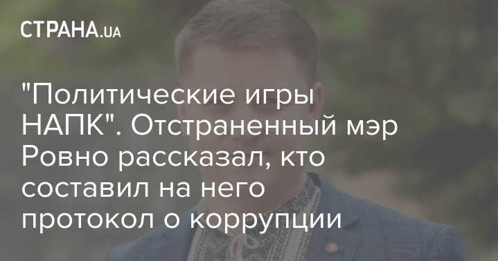"Политические игры НАПК". Отстраненный мэр Ровно рассказал, кто составил на него протокол о коррупции