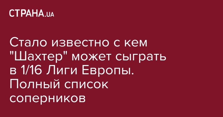 Отметим, что первые матчи 1/16 финала Лиги Европы намечены на 16 февраля, а ответные поединки пройдут 23 февраля.