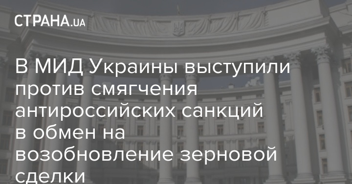 Украина выступает против ослабления части санкционного режима против РФ в обмен на возобновление зернового соглашения.