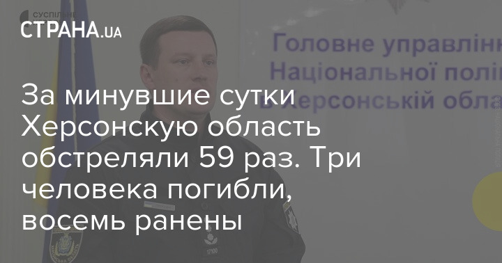 За минувшие сутки Херсонскую область обстреляли 59 раз. Три человека погибли, восемь ранены