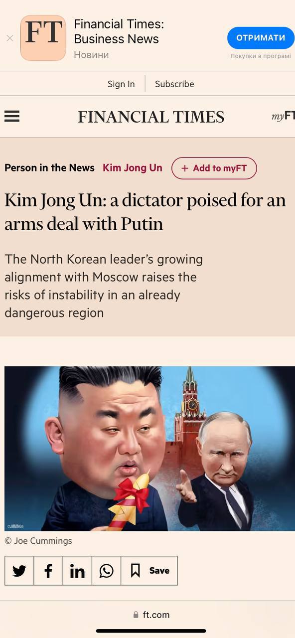 Северная Корея готова подписать с Россией соглашение о поставках оружия — Financial Times