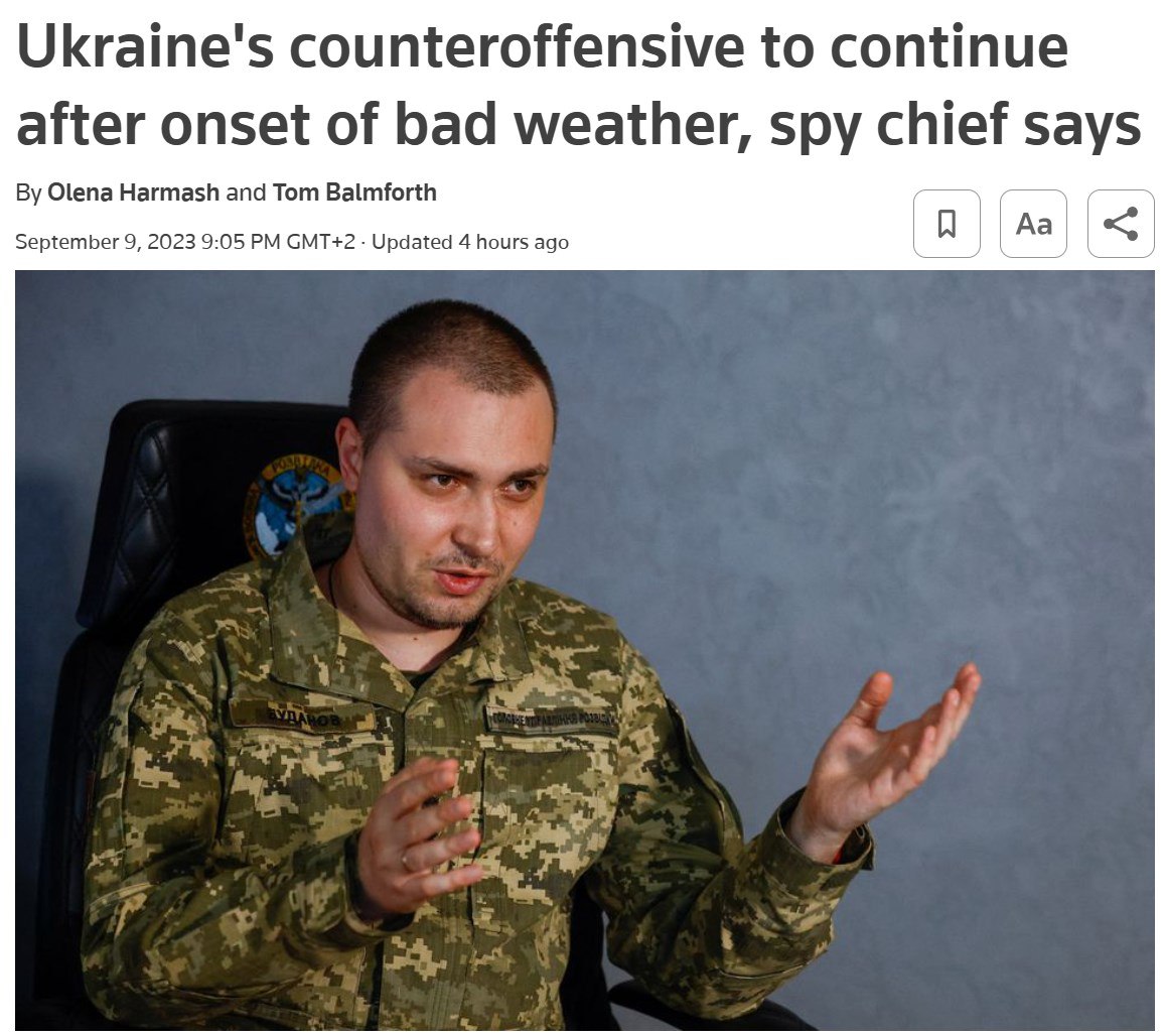 09:40 Контрнаступление Украины продолжится и после наступления холодов, заявил глава ГУР Кирилл Буданов. При этом "бороться с ней (Россией - Ред.) станет сложнее", цитирует Буданова Reuters.