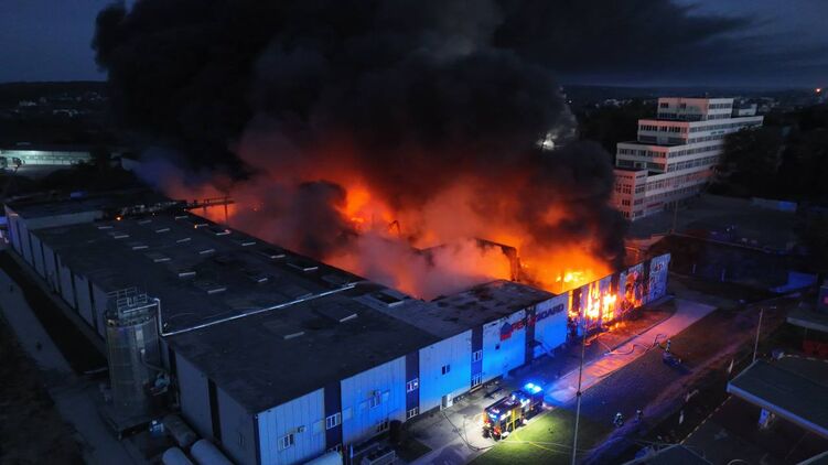 В Тернополе тушат масштабный пожар на предприятии. Фото: ГСЧС