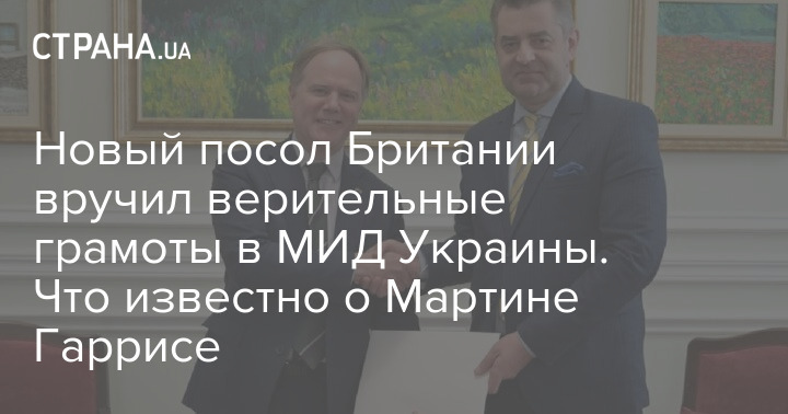 Новый посол Британии Мартин Гаррис начал работу в Украине. Сегодня он вручил копии верительных грамот заместителю министра иностранных дел.