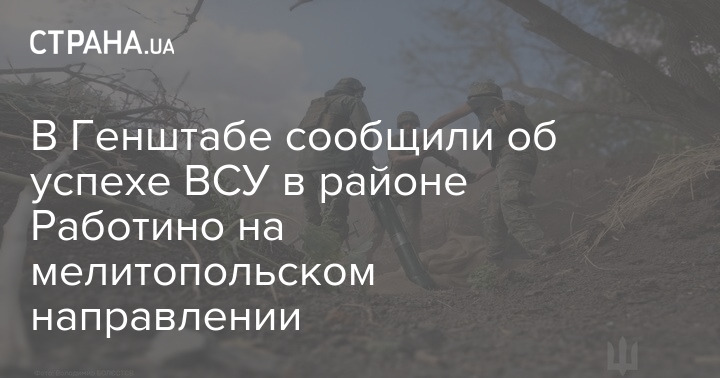 Спикер Генштаба Андрей Ковалев заявил, что украинские войска имеют успех в районе Работино на мелитопольском направлении.
