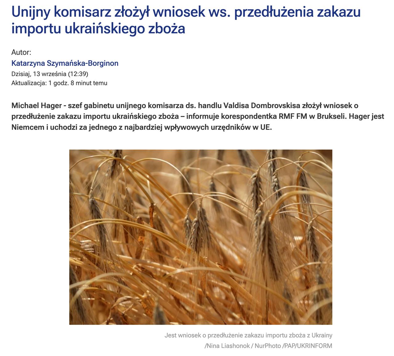 В Еврокомиссии внесли представление о продлении запрета на импорт украинской агропродукции в пять восточноевропейских стран (минуя Польшу, Румынию, Болгарию, Словакию и Венгрию) после 15 сентября.
