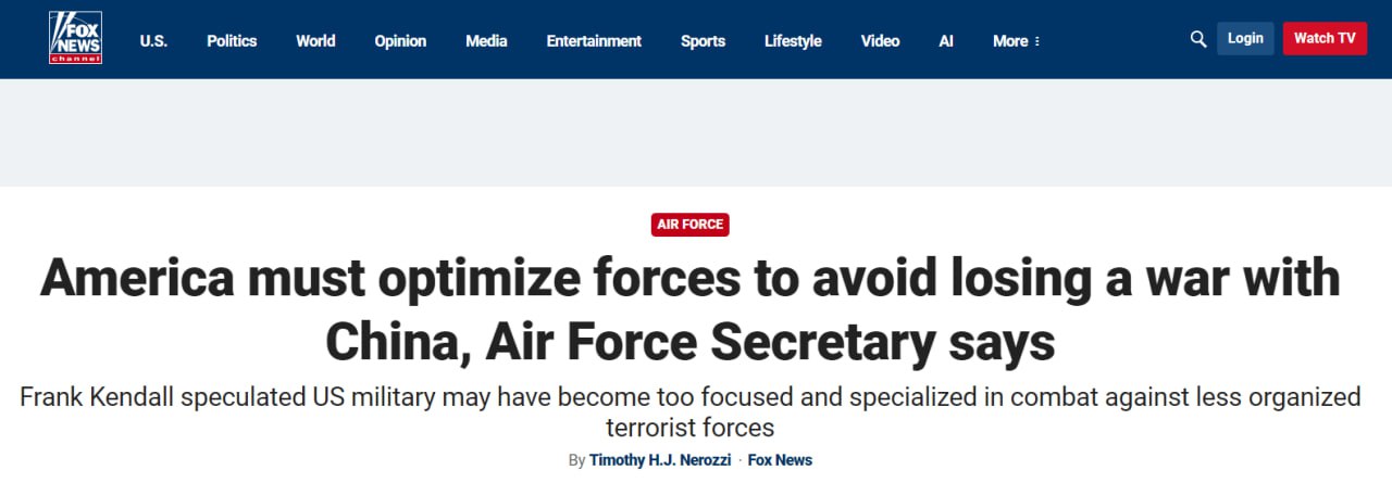 Министр военно-воздушных сил США Фрэнк Кендалл призвал власти страны оптимизировать ресурсы и быть готовым к вооруженному конфликту с Китаем.