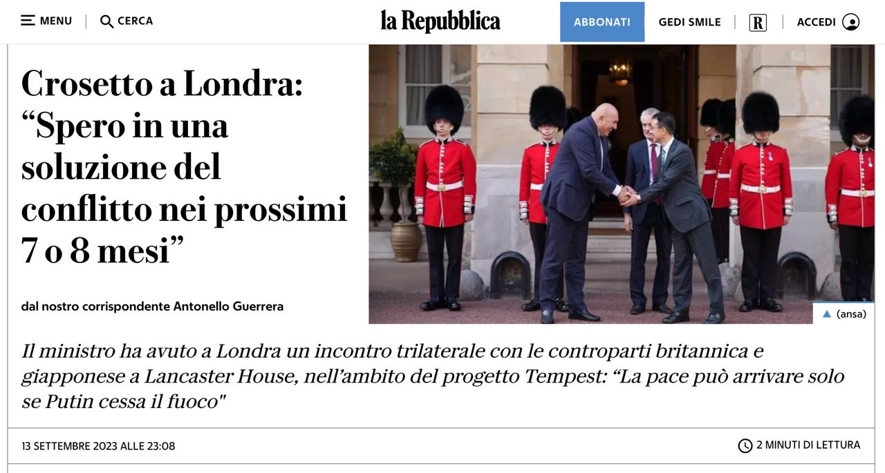 «Я надеюсь, что дипломатическое решение будет найдено в достаточно короткие сроки, в течение следующих семи или восьми месяцев. Это моя надежда», — заявил Гуидо Крозетто в комментарии la Repubblica.